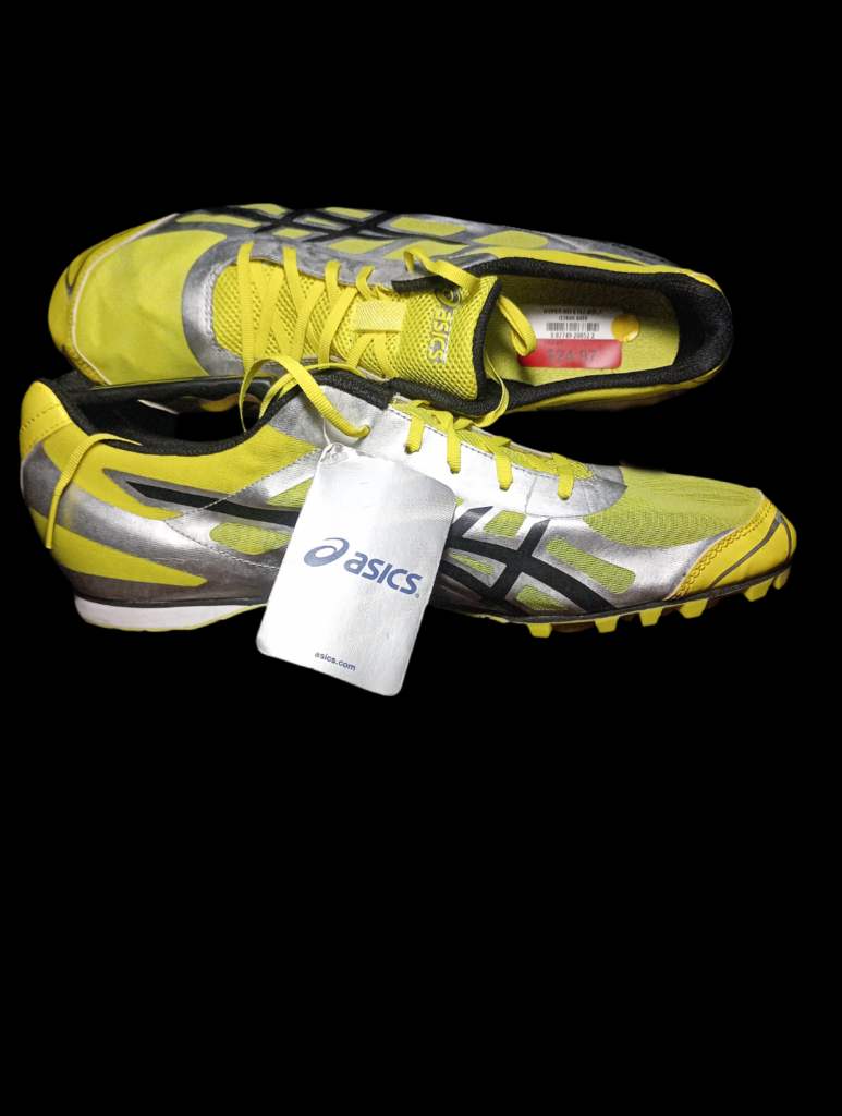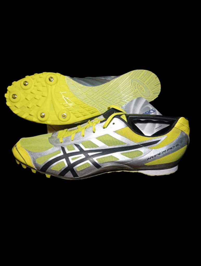 Las zapatillas en la imagen son las Asics Hyper MD 5, un calzado de atletismo diseñado específicamente para pruebas de media y larga distancia en pista.